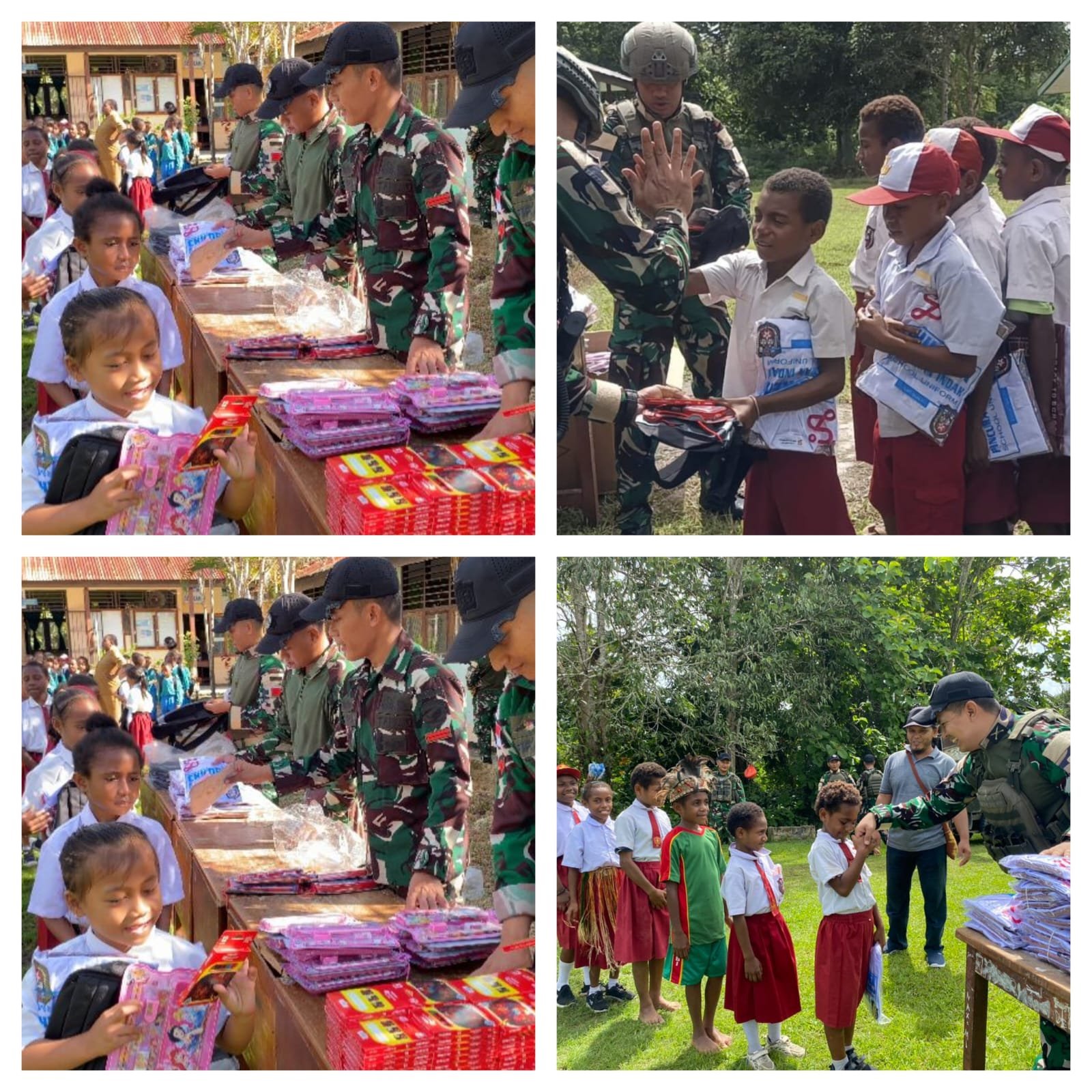 [ KEEROM ] -Suaramaureket.Com Personil Satgas Yonif 643/Wns Pos Kotis, Pos Wembi, Pos Waris dan Pos Kaliasin melaksanakan kegiatan pembagian seragam sekolah, tas, alat tulis kantor (ATK) dan pensil warna kepada siswa-siswi Sekolah Dasar (SD) di wilayah binaan sebagai bentuk kepedulian terhadap dunia pendidikan, Kab. Keerom, Prov. Papua, Rabu (28/1/2026).