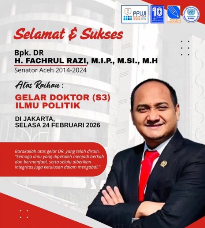 Jakarta – Suara Maureket.com Sabtu,28/2/2026, Tokoh politik Indonesia dan mantan senator DPD RI dari Aceh, Dr. Fachrul Razi, S.I.P., M.I.P., M.Si., M.H., M.I.Kom, telah resmi menyandang gelar doktor ilmu politik dari Universitas Nasional Jakarta setelah berhasil mempertahankan disertasinya di hadapan panel penguji, bertempat di Menara Universitas Nasional, Selasa (24-02-2026). Disertasinya yang berjudul ” Integrasi Politik di Aceh Pasca MoU Helsinki: Studi Pelembagaan Politik Wali Nanggroe (2013-2024),” memberikan analisis yang serius tentang lanskap politik Aceh dan memperingatkan bahwa potensi konflik antara Aceh dan pemerintah pusat tetap sangat tinggi.